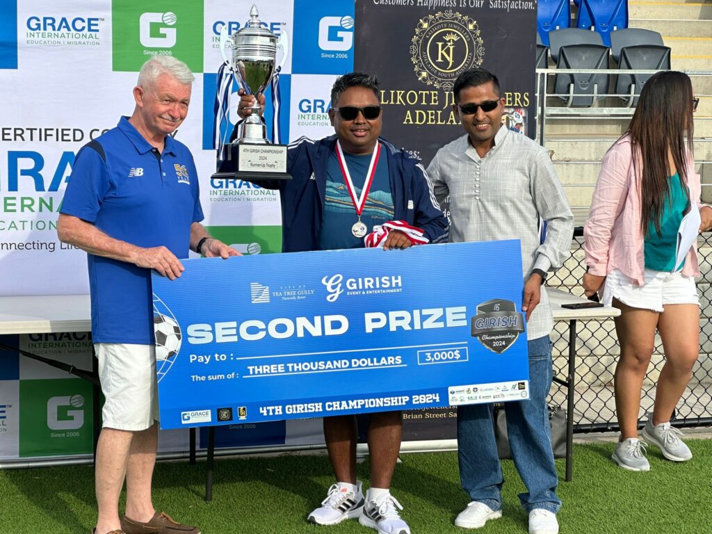 एडिलेड / साउथ अस्ट्रेलियामा सञ्चालित गिरीश च्याम्पियनसिप फुटवल प्रतियोगिताको चौथो संस्करण ‘गिरीश च्याम्पियनसिप २०२४’ को उपाधि मेलबर्नको यति फुटबल क्लबले जितेको छ । फुटवल प्रतियोगिता नोभेम्वर २३ शनिवार र २४ आइतवार दुई दिन गरी एडिलेडको न्यु स्पोर्ट स्टीडियममा सम्पन्न भएको हो । प्रतियोगितामा सिड्नीको सेन्टजर्ज फुटबल क्लबलाई शून्यका विरुद्ध एक गोल अन्तरले पराजित गर्दै यति फुटबल क्लबले उपाधिमा कब्जा कब्जा गर्न सफल भएको थियो। यति फुटबल क्लबले जितसँगै १२ हजार डलर पुरस्कार र ट्रफी प्राप्त गरेको छ। क्लबलाई उपाधि जिताउन अभिषेक रिजालले निर्णायक गोल गरेका थिए।