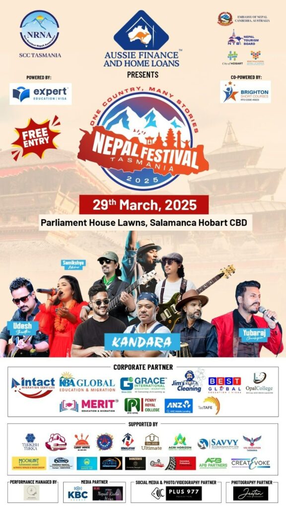 तास्मानिया,अस्ट्रेलिया /अस्ट्रेलियाको तास्मानिया राज्यको राजधानी होबार्टमा यही मार्च २९ मा भव्य रुपमा नेपाल महोत्सव २०२५ आयोजना हुने भएको छ। नेपाली कला, संस्कृति र परम्परालाई प्रवर्द्धन गर्दै नेपाललाई अन्तर्राष्ट्रियस्तरमा चिनाउने उद्देश्यका साथ महोत्सवको तयारी तीव्र रुपमा भइरहेको छ।