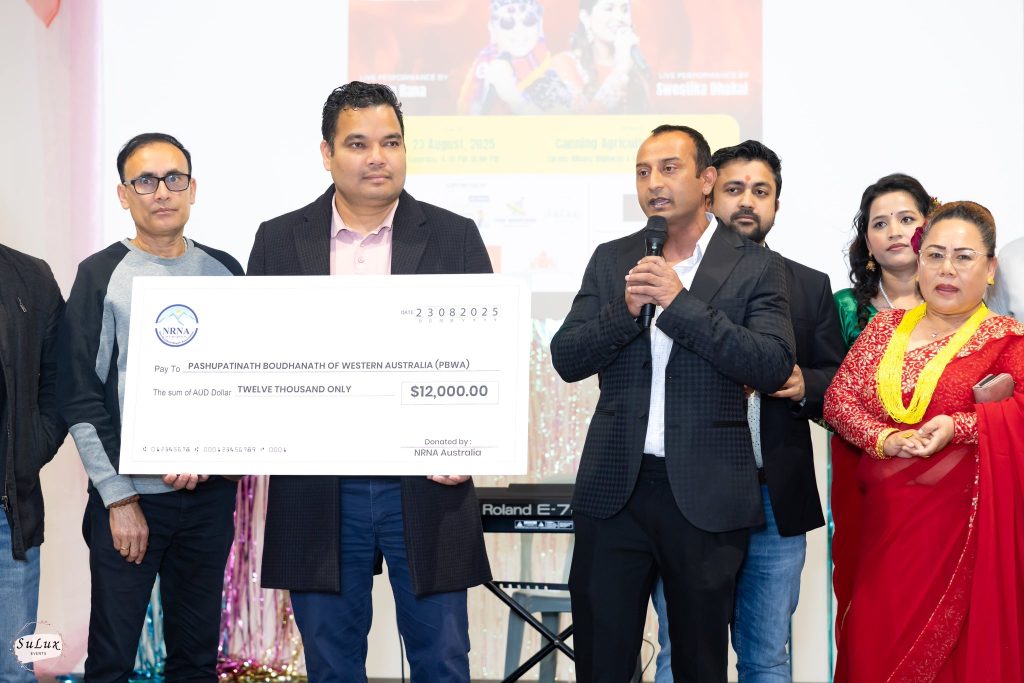 कार्यक्रममा एनआरएनए पश्चिम अष्ट्रेलियाका संयोजक शेखर घिमिरेले संस्थाको तर्फबाट चेक हस्तान्तरण गर्नुभयो भने, सो सहयोग नेपाली मन्दिर तथा कम्युनिटी सेन्टर का अध्यक्ष राजेश बुढाथोकेले ग्रहण गर्नुभयो। कार्यक्रममा एनआरएनएका पदाधिकारी, स्थानीय समुदायका प्रतिनिधिहरू र समाजसेवीहरूको समेत उल्लेखनीय उपस्थिति थियो।