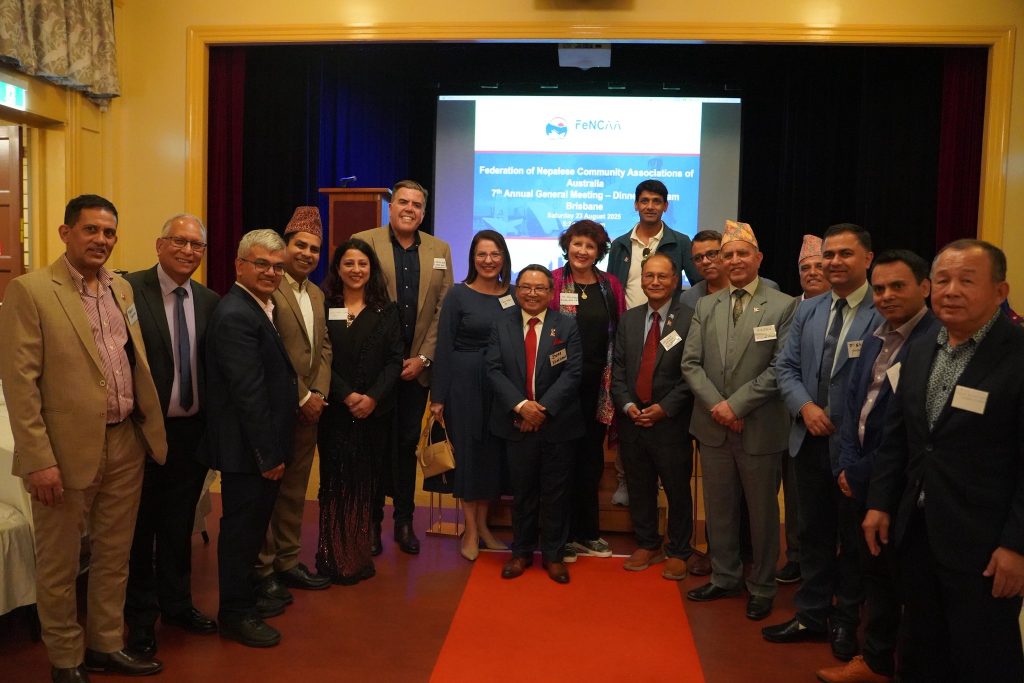 क्वीन्सल्याण्ड – अष्ट्रेलियाभरका नेपाली समुदायलाई एउटै मञ्चमा ल्याउँदै आएको फेडेरेसन अफ नेपालीज कम्युनिटी एसोसिएसन्स अफ अष्ट्रेलिया (फेन्का) ले आफ्नो सातौँ वार्षिक साधारणसभा भव्य रूपमा सम्पन्न गरेको छ। शनिबार ह्यामिल्टन टाउन हलमा सम्पन्न साधारणसभामा गत कार्यकालको समिक्षा गर्दै नयाँ नेतृत्वलाई पदहस्तान्तरण गरिएको थियो।
