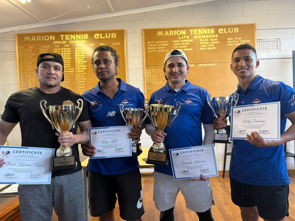 एडिलेड,अष्ट्रेलिया / नेपाली टेनिस क्लब अष्ट्रेलियाको आयोजनामा एडिलेडमा स्थानिय म्यारियन टेनिस क्लवमा आयोजित वार्षिक डबल टेनिस प्रतियोगिता उत्साहपूर्ण वातावरणमा सम्पन्न भएको छ। खेलको विभिन्न चरणमा देखिएको स्वस्थ प्रतिस्पर्धा, अनुशासित खेल शैली र सहभागीहरूको उच्च मनोबलले यस कार्यक्रम विशेष र भव्य रुपमा सम्पन्न भएको आयोजकले जानकारी दिएका छन्।