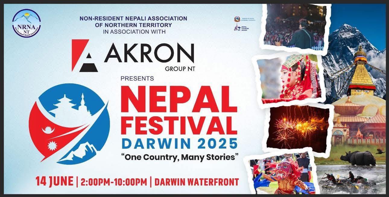 डार्विन,अष्ट्रेलिया – अष्ट्रेलियाको नर्दर्न टेरिटोरीस्थित डार्विन शहर आगामी १४ जुन २०२५ मा नेपाली कला, संस्कृति, स्वाद र एकताको भव्य प्रदर्शनी हुने भएको छ। गैरआवासीय नेपाली संघ (एनआरएनए) नर्दर्न टेरिटोरीको आयोजना र Akron Group NT को शीर्ष प्रायोजनमा “नेपाल फेस्टिभल डार्विन २०२५” विविध सांस्कृतिक कार्यक्रमसहित डार्विन वाटरफ्रन्टमा हुने पक्का भएको छ।